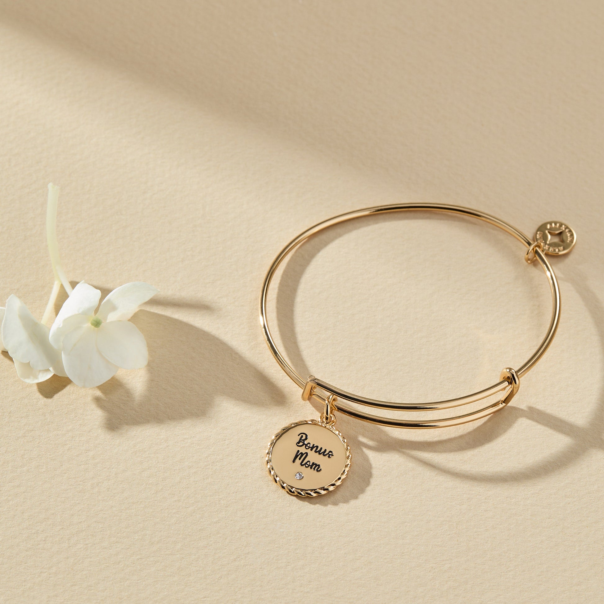 Celebrate the special bond with this beautiful Bonus Mom charm bangle—designed to honor the incredible woman who stepped into your life and heart. The back of the charm reads, “Family isn’t only blessed by name,” a touching reminder that love is what truly defines family.